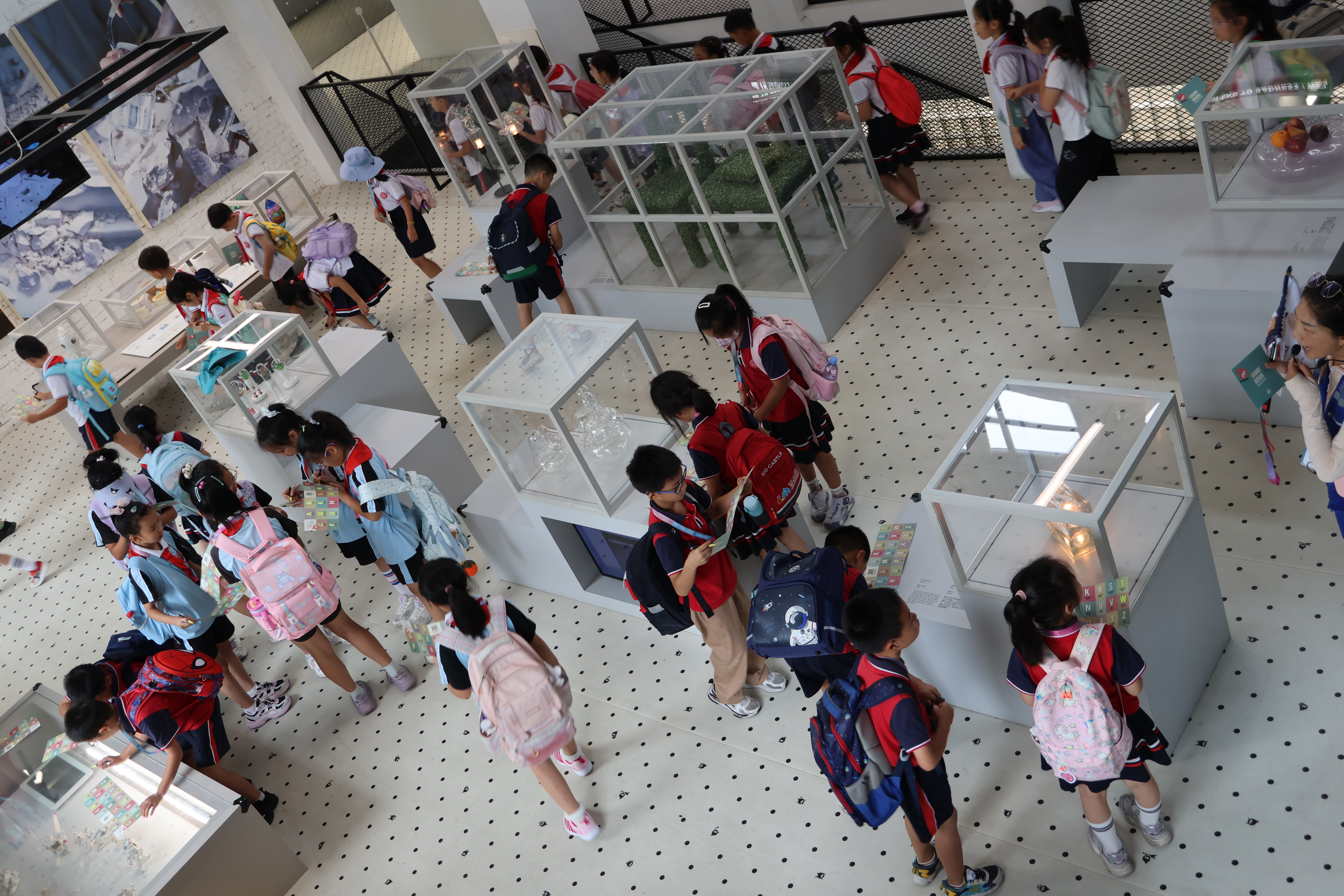 在儿童玻璃博物馆,同学们瞬间被带入一个五彩斑斓的童话世界。这里不仅是游乐场,更是启蒙地。通过互动游戏打卡,同学们了解了玻璃的起源与特性;探索玻璃这一变化多端的材料,透过玻璃看未来大千世界。这一刻,好奇的种子在心底萌发。