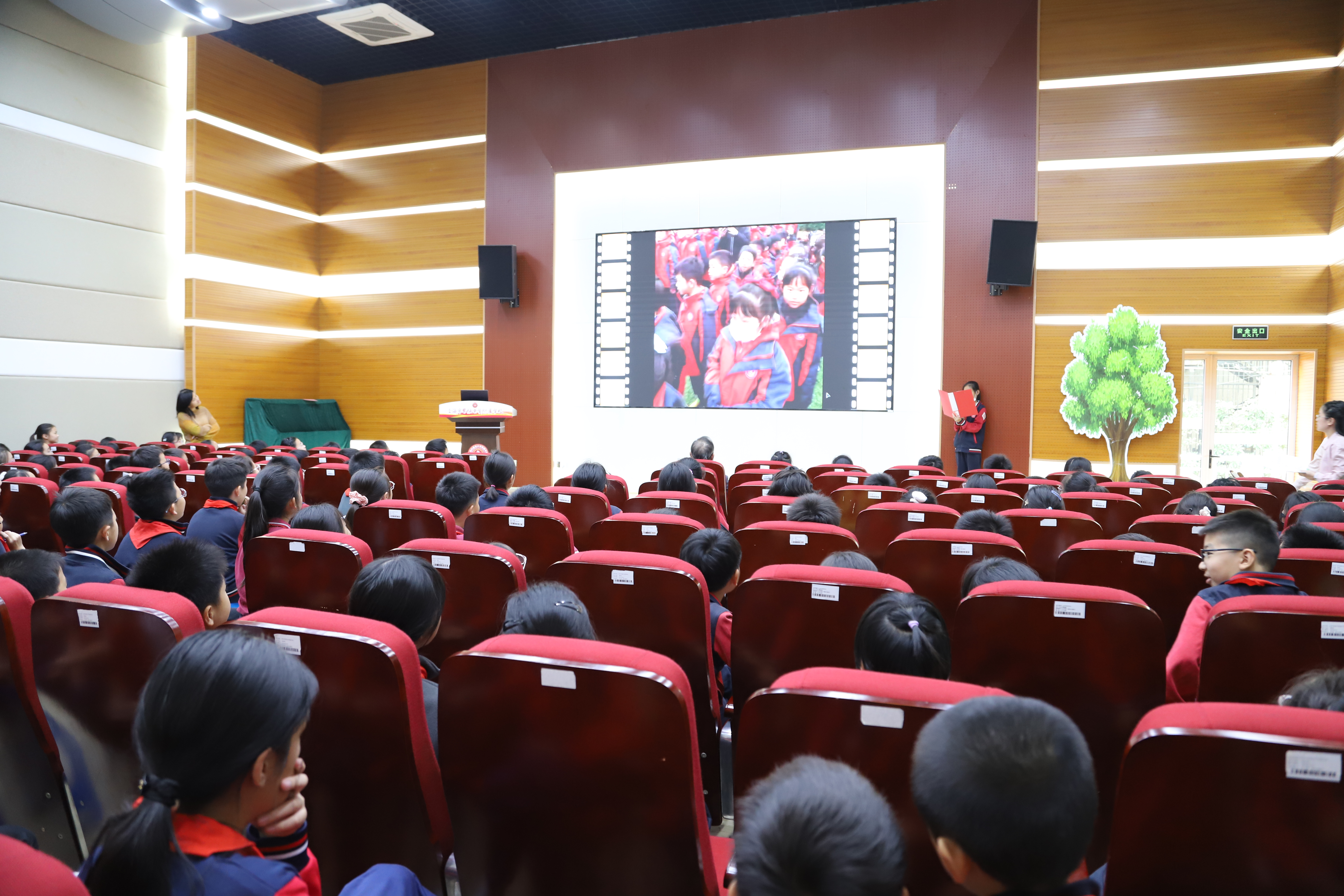 大屏幕上一帧帧熟悉的画面,汇成一条名为《我们的五年》的时光长廊。从一年级入学时稚嫩的启智礼,到运动会上奋力冲刺的瞬间;从艺术节舞台上绚烂的绽放,到课堂上求知若渴的眼神……