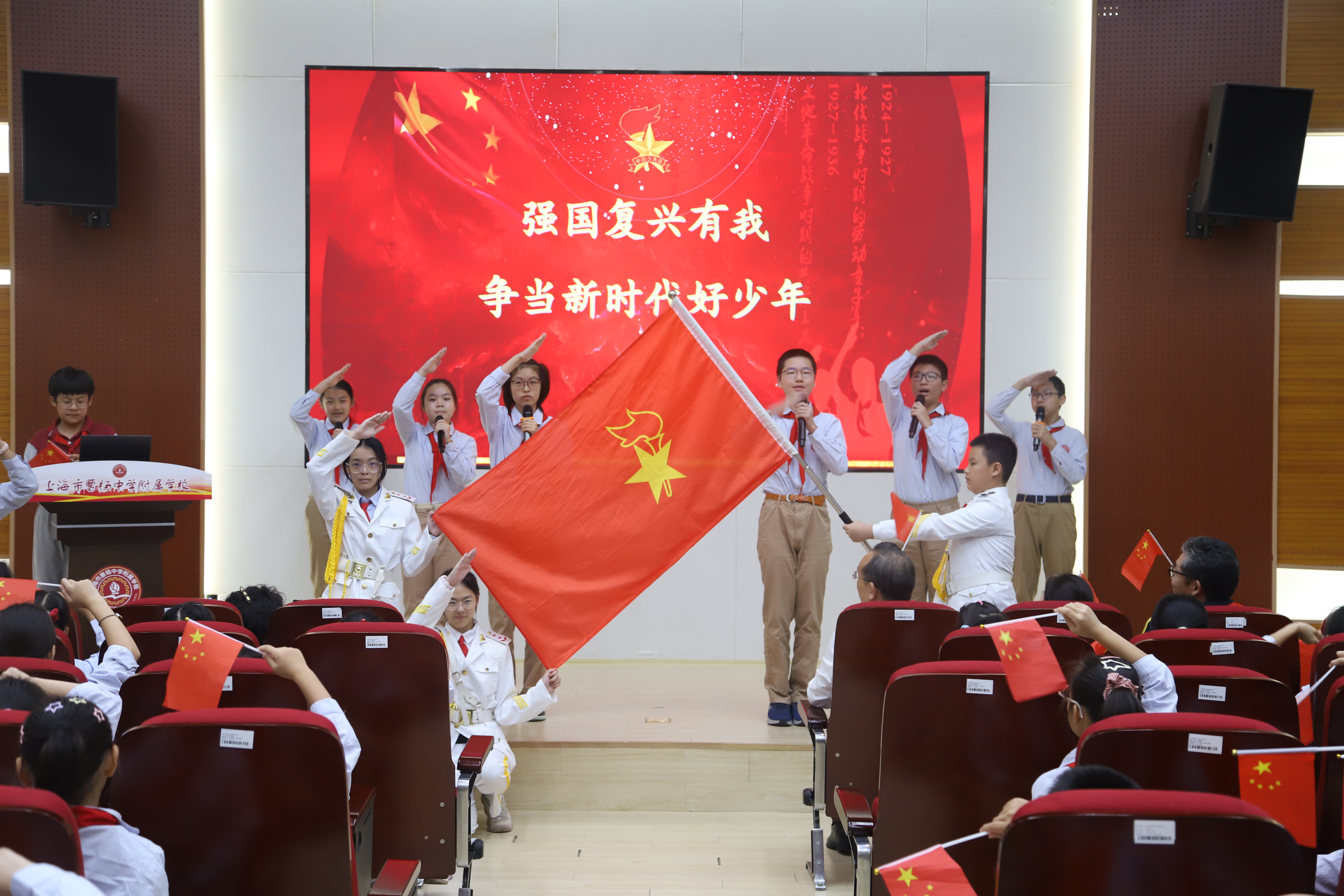 仪式开始:队歌起,领巾扬,少年整装显庄重